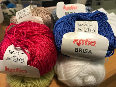 The Yarn:4 balls of silky Katia Brisa and 2 balls of Katia Peques;baby soft.